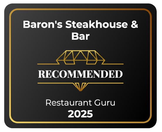 Be our guest and dine-in with Baron's Steakhouse + Bar for the ultimate culinary experience. Even though we carry dozens of appetizers, salads, entrées and steaks, you can't go wrong as our meals are expertly prepared by our very own culinary artist committed to bringing out the best possible flavors to all of your favorites. Indulge in elegance at Baron's Steakhouse + Bar.